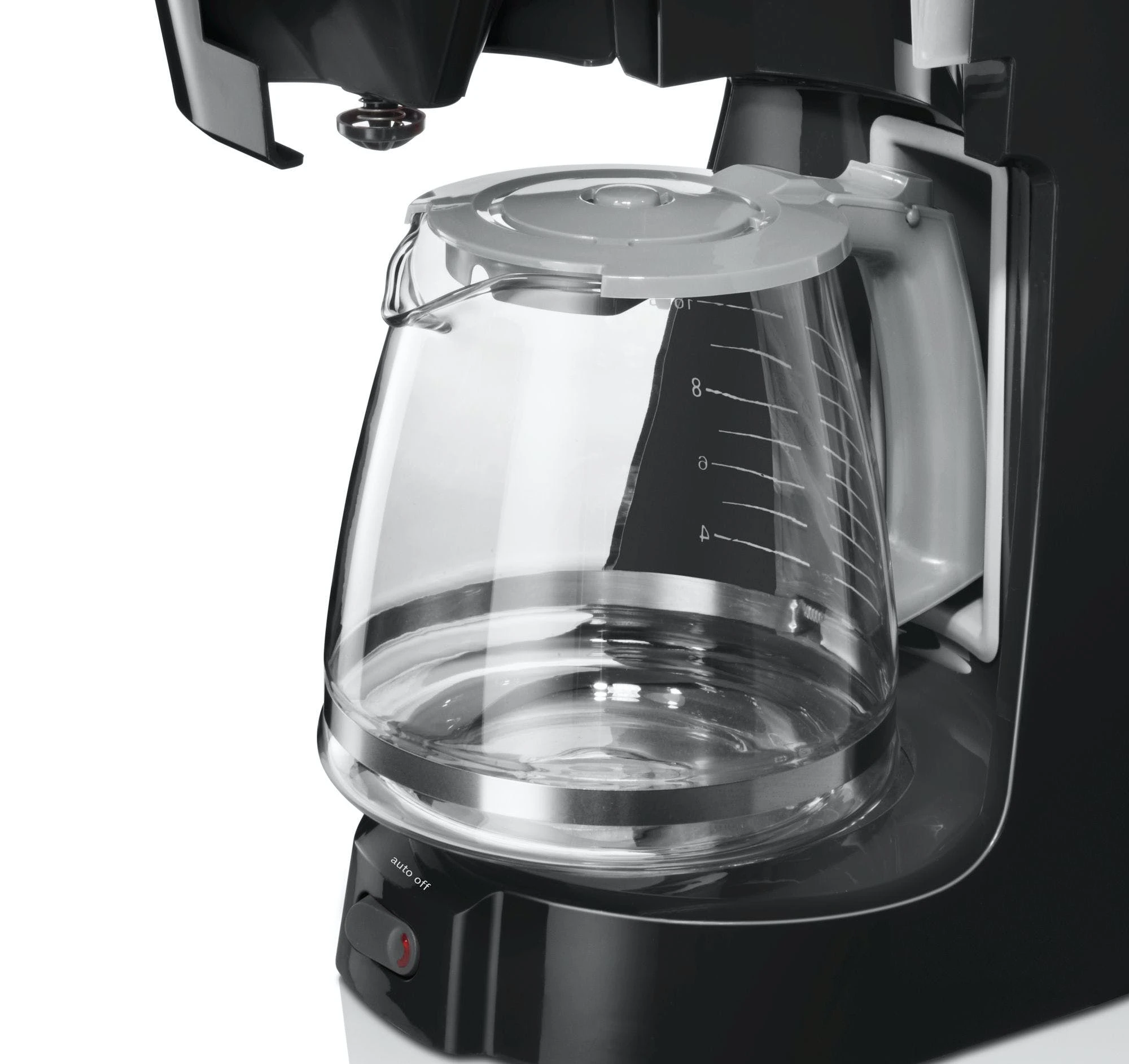 Bosch TKA3A033. Produkttyp: Filterkaffeemaschine, Kaffeezubereitungstyp: Halbautomatisch, Fassungsvermögen Wassertank: 1,25 l, Kaffee-Einfüllart: Gemahlener Kaffee, Behälter für gebrühten Kaffee: Karaffe, Kapazität (in Tassen): 10 Tassen. Leistung: 1100 W. Produktfarbe: Schwarz
