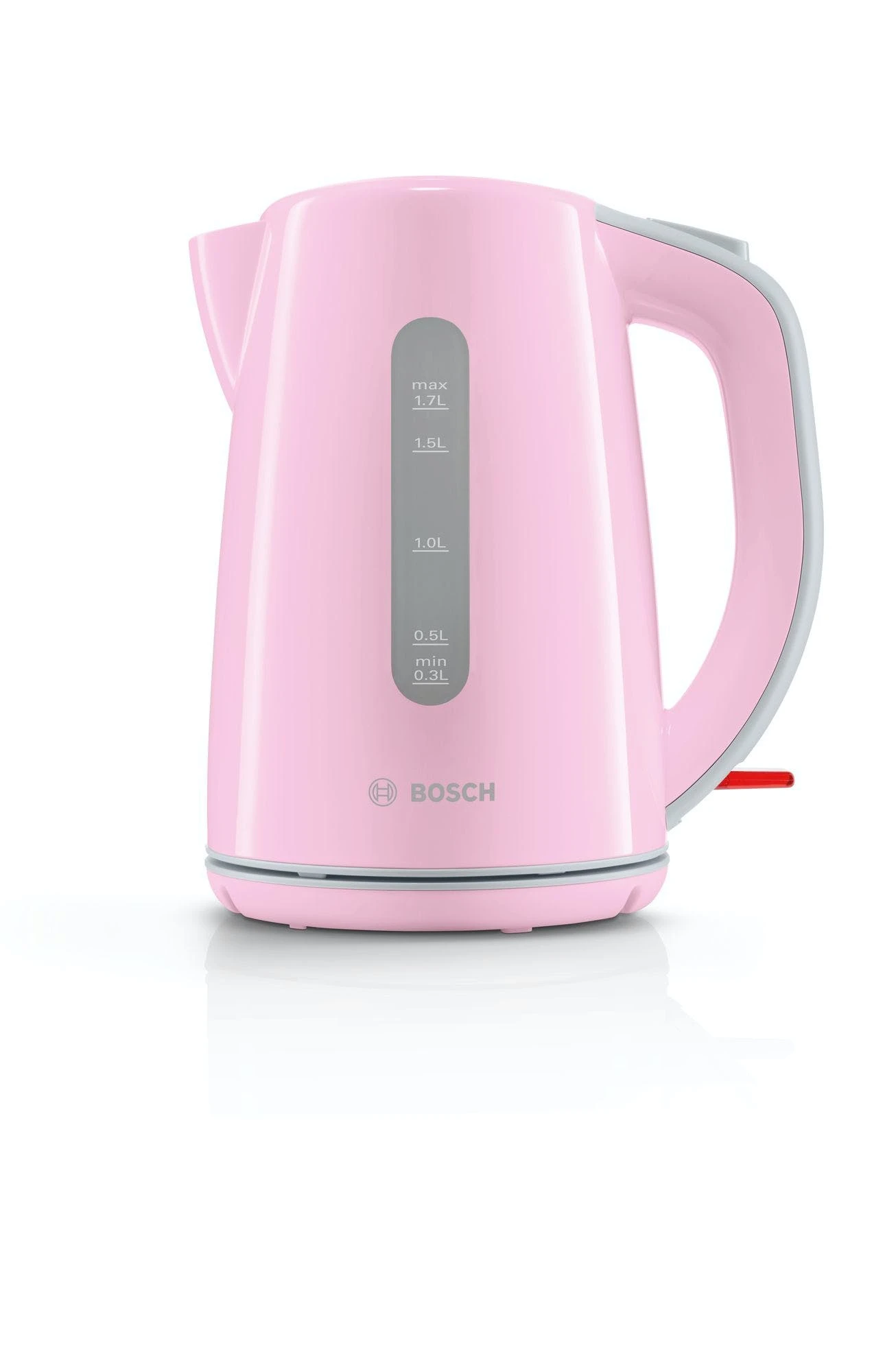 Bosch TWK7500K. Fassungsvermögen Wassertank: 1,7 l. Leistung: 2200 W. Produktfarbe: Grau, Pink, Gehäusematerial: Kunststoff, Wasserstandsanzeige, Überhitzungsschutz. Drahtlos