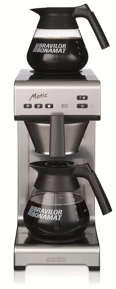 Bravilor Bonamat Filterkaffeemaschine Mondo Twin Kaffee- und Teebrühmaschine mit manueller Wasserbefüllung. Ausführung: > 2 Brühsystem > 2 Edelstahlfilterpfanne > 4 Warmhalteplatten, selbstregulierend > 4 Glaskannen Ausstattung: > CNS-Durchlauferhitzer