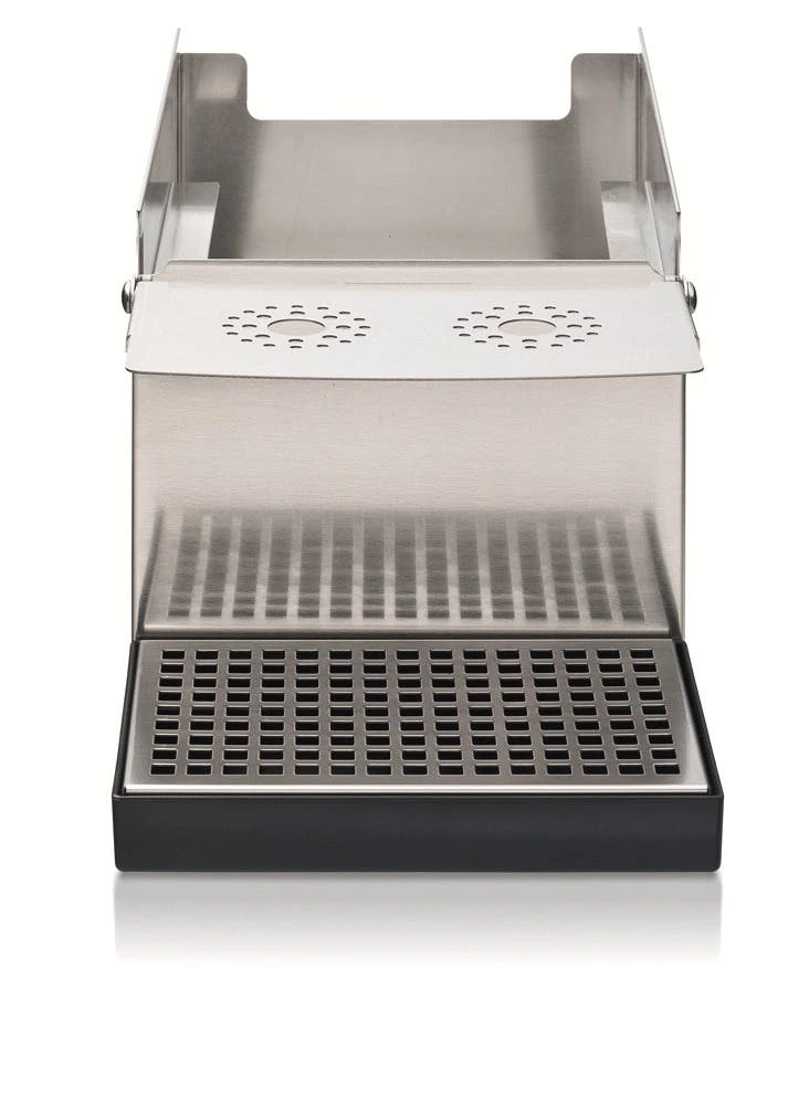 Bravilor Bonamat Servierwagen 30S > 1 Rück- und 2 Seitenwände > 4 Lenkrollen, davon 2 feststellbar > Fixiernocken für Vorratsbehälter > seitliches Klappbord mit Bügel für Müllbeutel > 3 Einschübe für Geschirrkörbe (500 x 500 mm) und GN-Behälter > aus ros