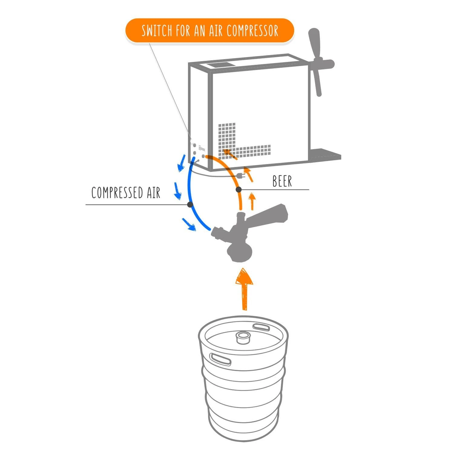 Null Komplett Set – Bier Zapfanlage PYGMY 20/K Mit Membranpumpe, 1-leitig Trockenkühlgerät Aus Edelstahl, 20 Liter/h, Green Line
