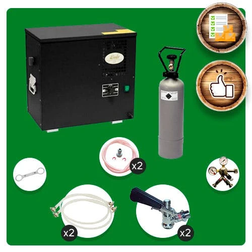 Null Komplett Set Zapfanlage, AS-40, 2-leitig, Durchlaufkühler, Nasskühler – Untertheke, Green Line