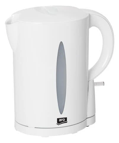 Wasserkocher aus Kunststoff mit Sicherheitsverschlussdeckel sowie automatischer und manueller Abschaltung.