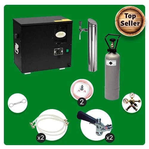 Null Untertheken Komplett Set Zapfanlage, AS-40, 2-leitig, Durchlaufkühler, Nasskühler – Untertheke, Inkl. Schanksäule, Green Line
