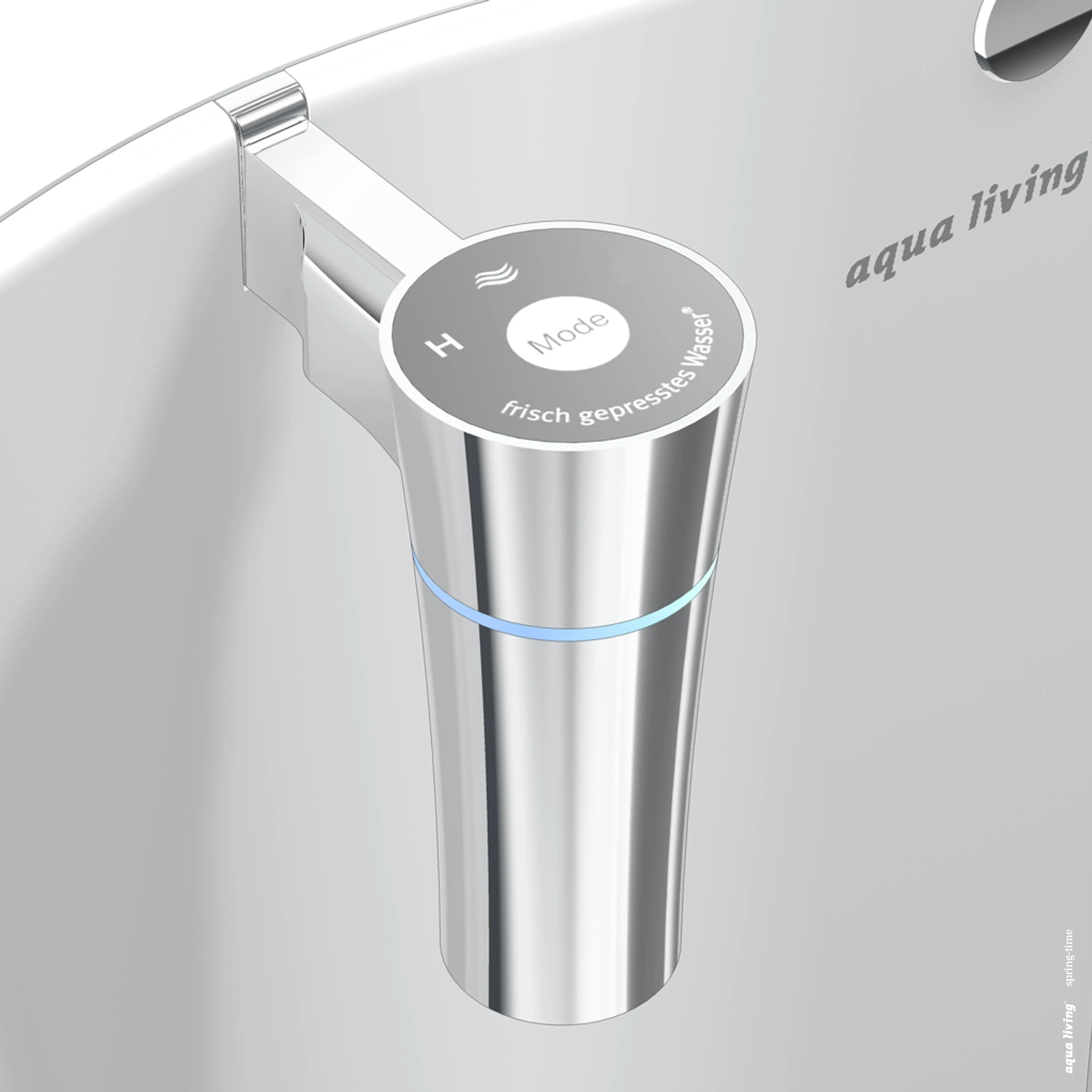 Zusätzlich zu den drei bekannten Filtern zur Wasserreinigung kommt ein weiterer Filter hinzu: der Sterilfilter. Er befindet sich im neuen Auslaufhahn und ist eine zusätzliche Sicherheitsstufe.