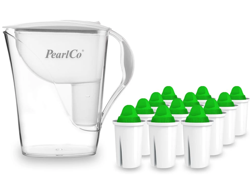 Pearlco Glas-Wasserfilter Schwarz Inkl. 12 Alkaline Filterkartuschen