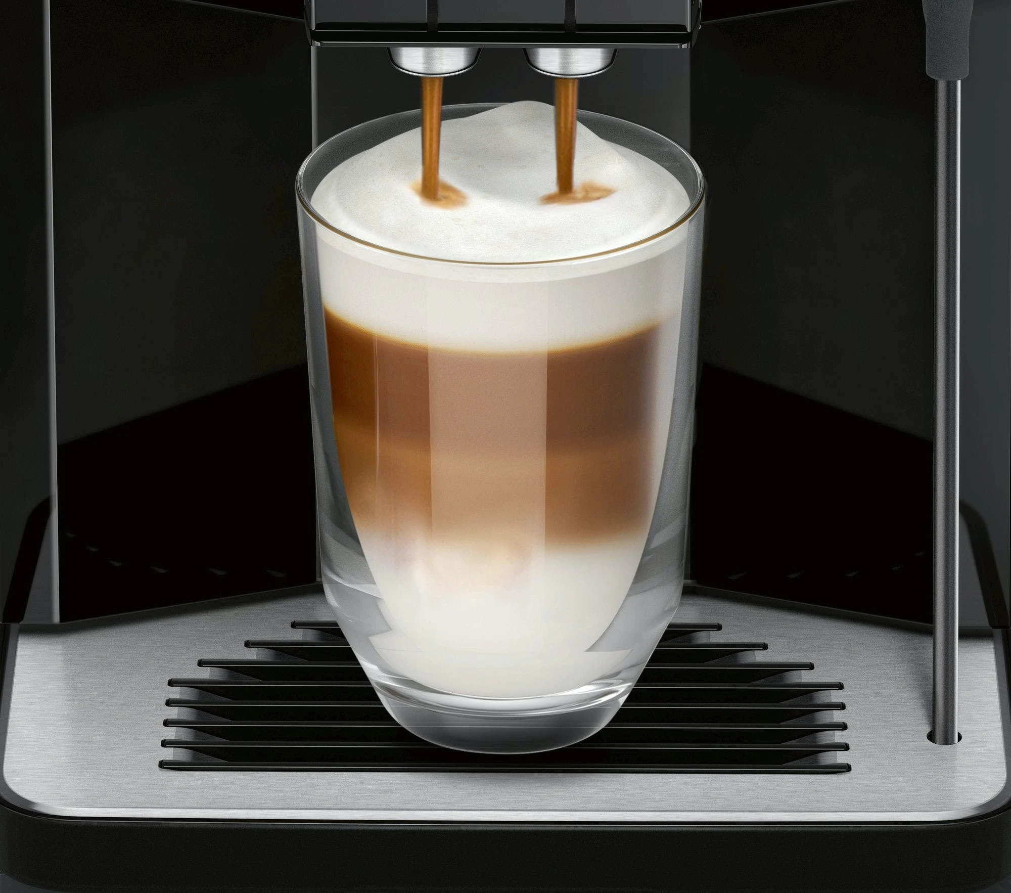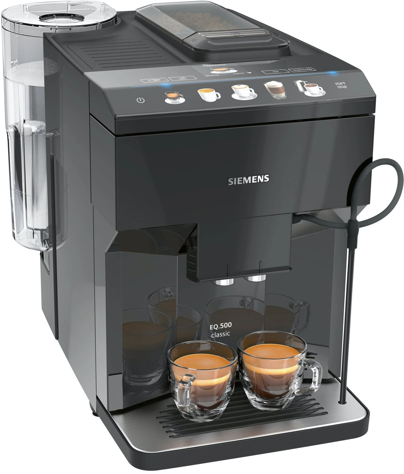 Siemens EQ.500 TP501R09. Kaffeezubereitungstyp: Vollautomatisch, Fassungsvermögen Wassertank: 1,7 l, Kaffee-Einfüllart: Kaffeebohnen, Gemahlener Kaffee, Behälter für gebrühten Kaffee: Tasse, Eingebautes Mahlwerk. Display-Typ: TFT. Leistung: 1500 W. Produktfarbe: Schwarz